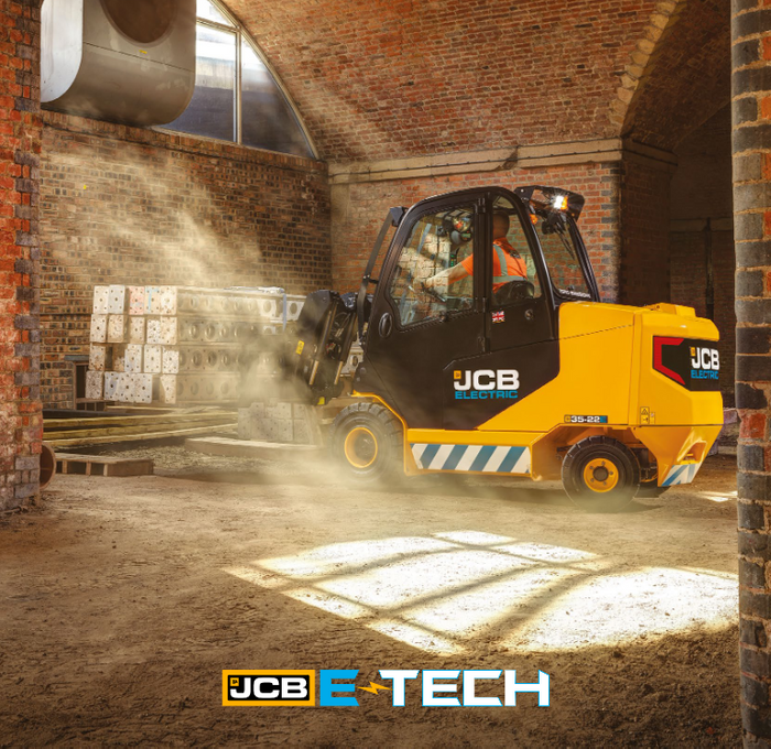 JCB is leading the way in clean technology and reducing harmful emissions. That's why we are introducing JCB E-TECH, a generation of electric products with zero emissions at point of use that don't compromise on performance. The JCB electric Teletruk is the world's most versitle counterbalance forklift. Unique forward reach allows single side truck, van and container loading and unloading.