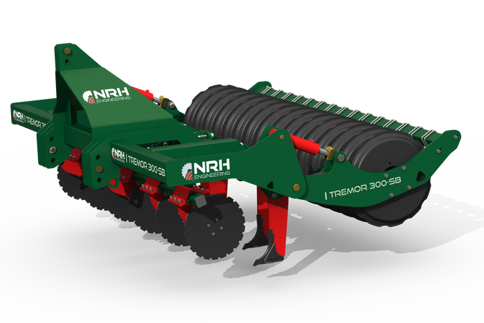 NRH Engineering has equipped the Tremor with hydraulic disc and packer roller depth adjustment, allowing the operator to make adjustments from the cab. With transport widths of 3.1m for the rigid model and less than three metres for the folding version, moving the Tremor from field to field is hassle-free.