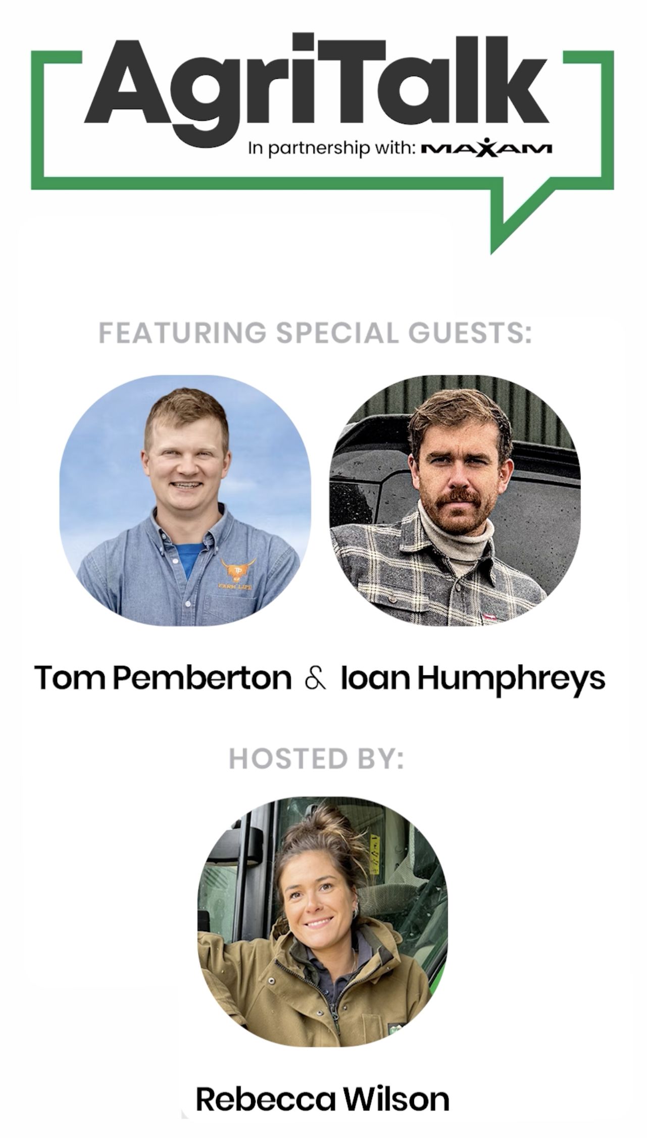 The MAXAM AgriTalk panel discussion returns for its third year on the Kirkby Tyres stand, hosted by Rebecca Wilson and featuring special guests Ioan Humphreys (That Welsh Farmer) and Tom Pemberton, three of the most recognisable and respected voices in UK agriculture.