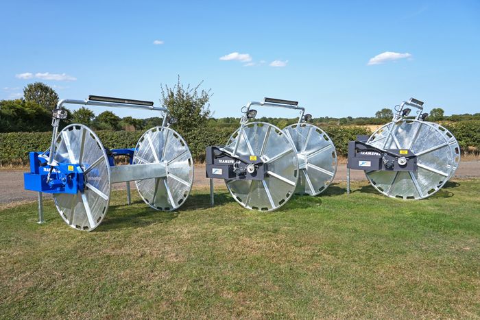 Tramspread 1400m, 1000m and 600m random wrap hose reelers are designed for use with front or rear tractor linkage.